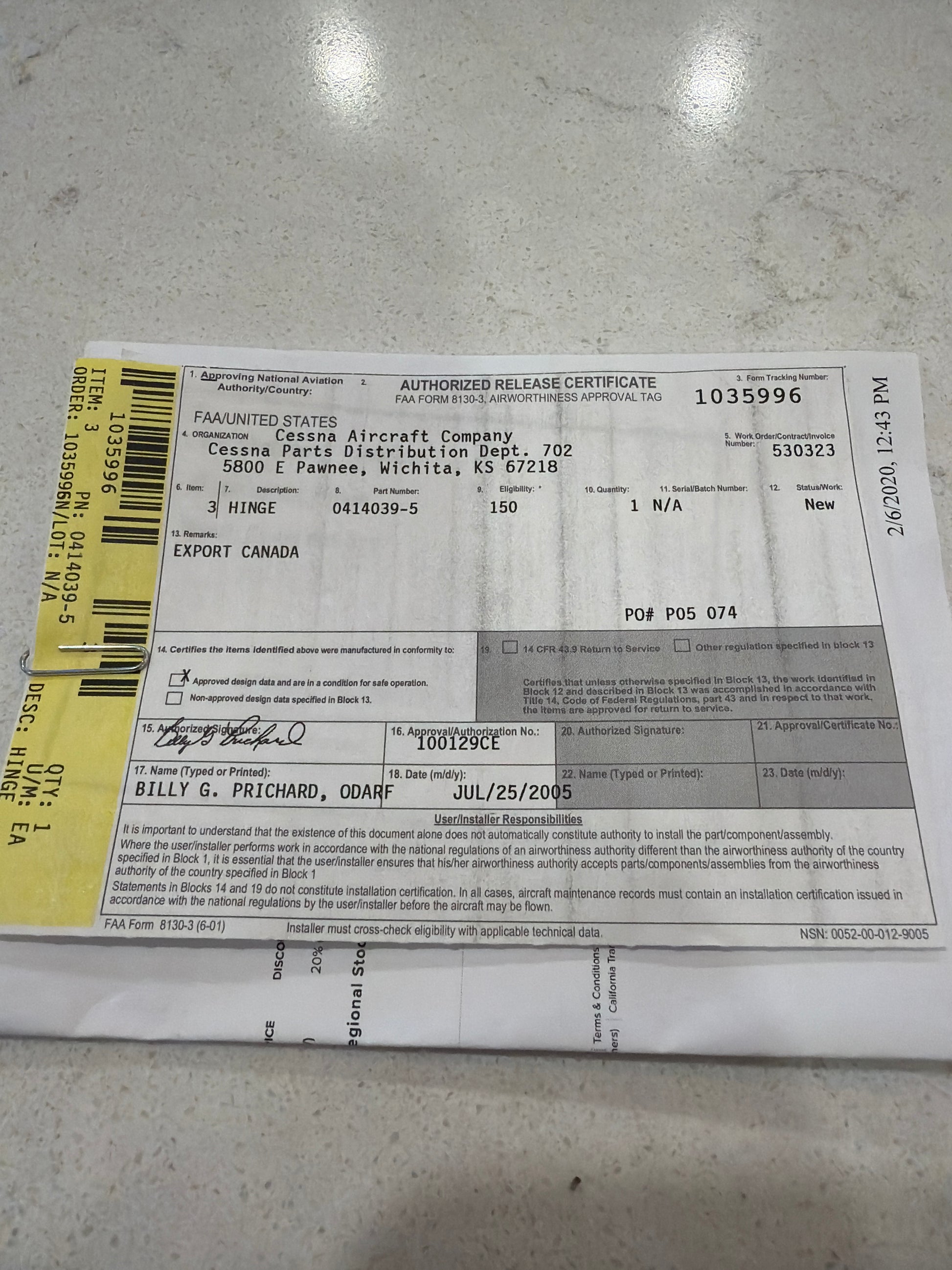 Includes FAA 8130 certification.